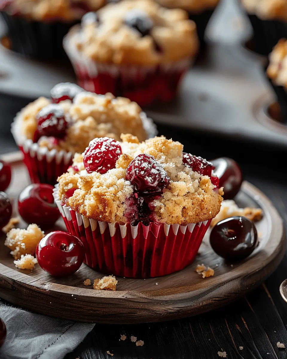 Delicious and fluffy cherry cobbler muffins, perfect for any occasion.