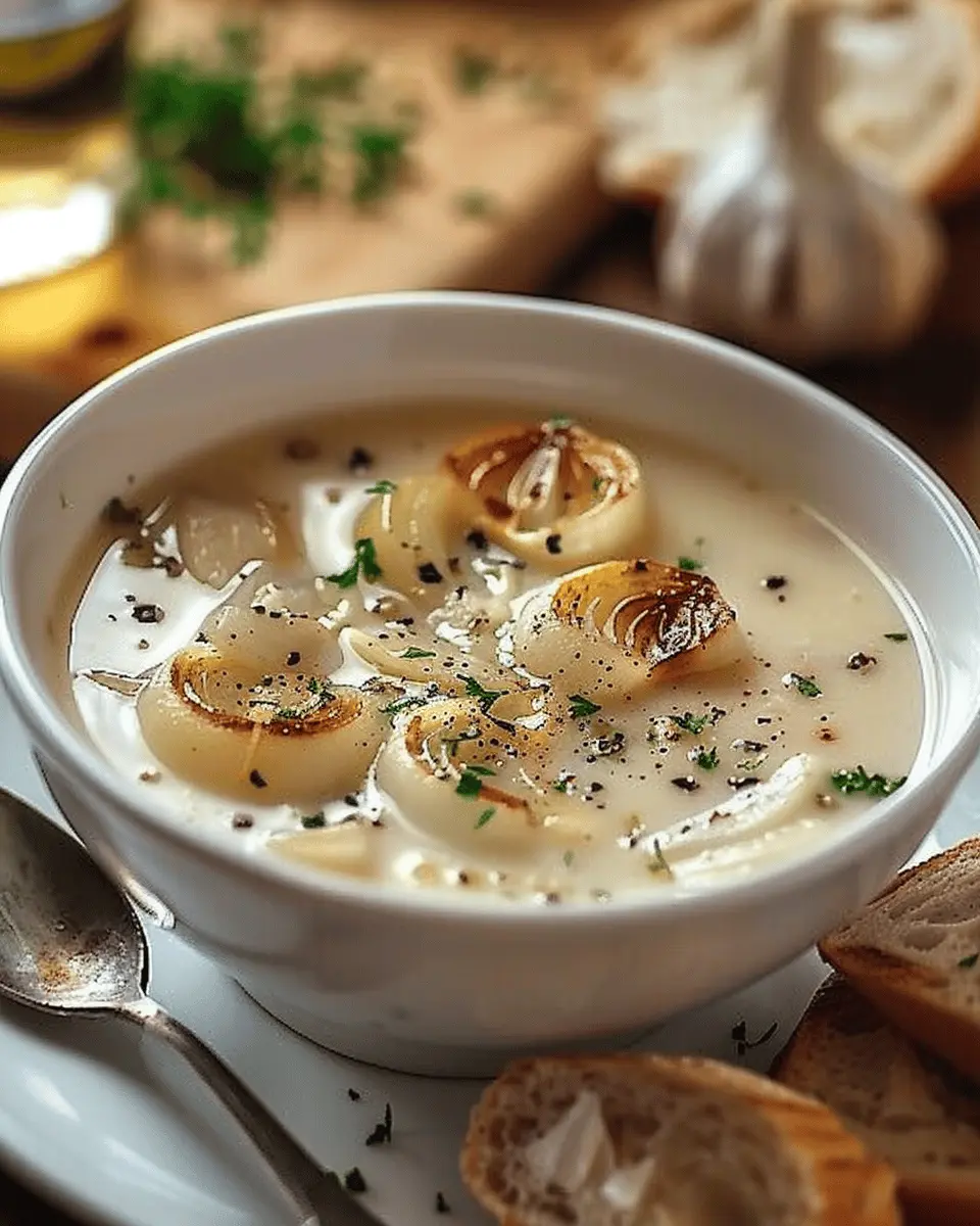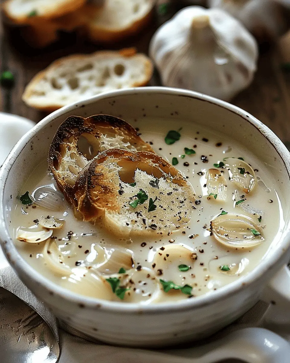 In total, you’re looking at roughly 45-55 minutes from start to finish. What’s more, making this soup doesn’t just fill your belly; it fills your home with the irresistible aroma of garlic. If you want to elevate your soup further, consider pairing it with crusty bread or a bright salad for a full meal experience.