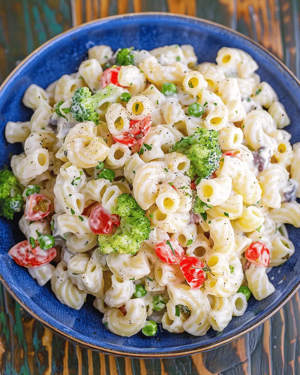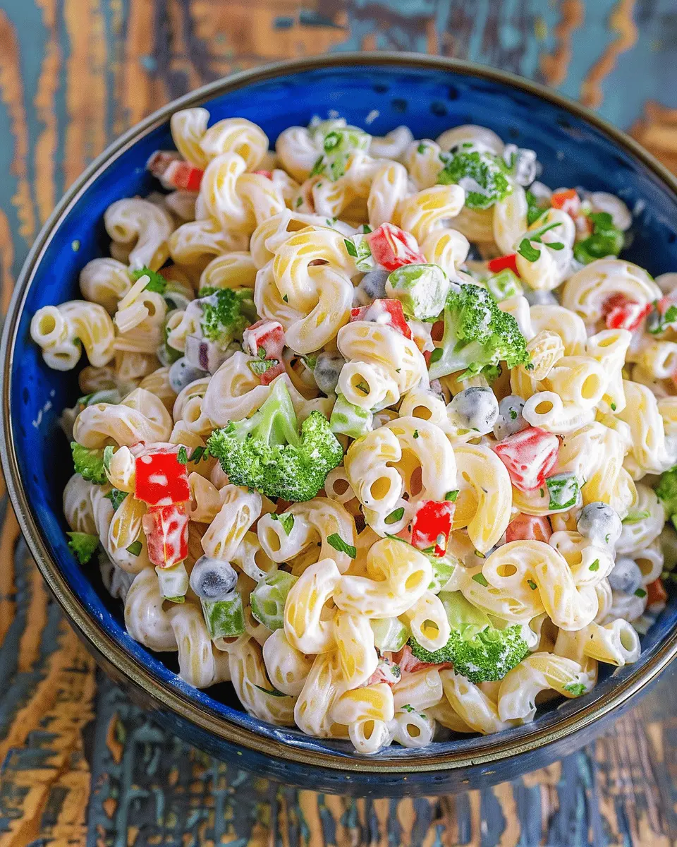 Overall, this creamy pasta salad is not just tasty but also contributes to a balanced diet! If you’re looking to switch things up, consider adding more colorful veggies to boost its nutritional value even further.