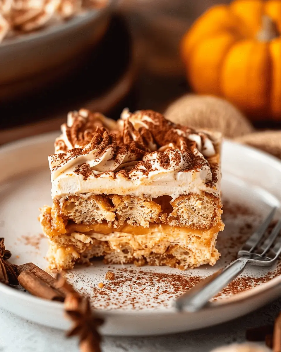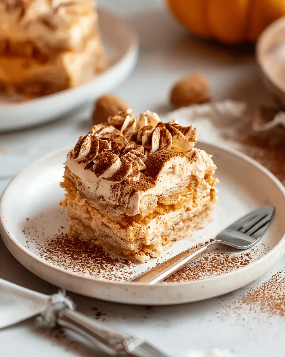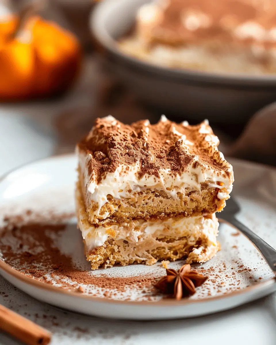 A delightful dessert that combines the classic flavors of tiramisu with creamy pumpkin and warm spices.