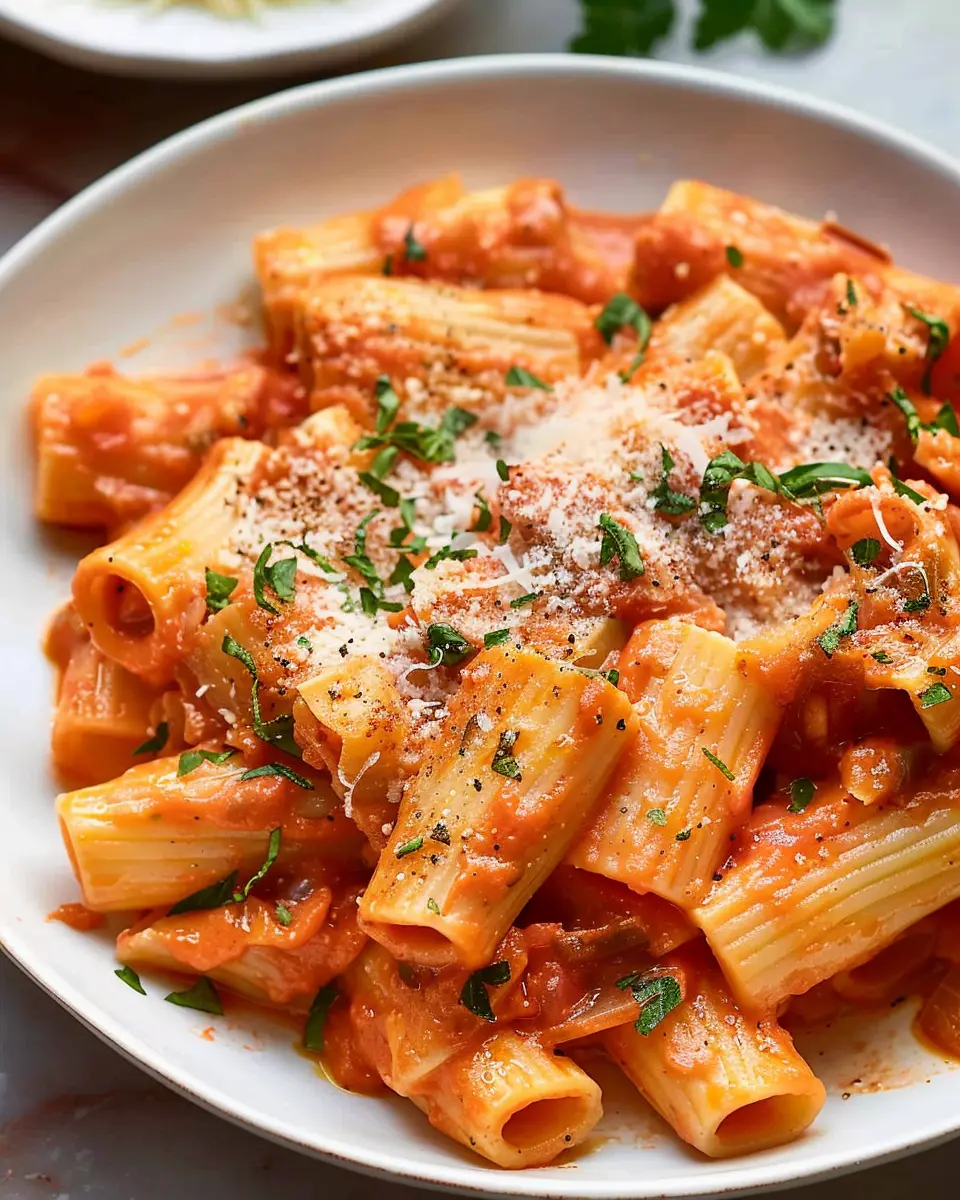 Want to elevate your creamy tomato rigatoni pasta even more? Consider these garnishes: