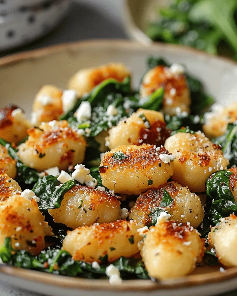 Once everything is combined and heated through, it’s time to serve! Plate your crispy gnocchi with spinach and feta immediately. Garnish with a sprinkle of fresh herbs, like parsley or basil, for an attractive finish.