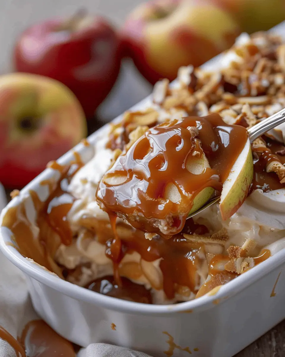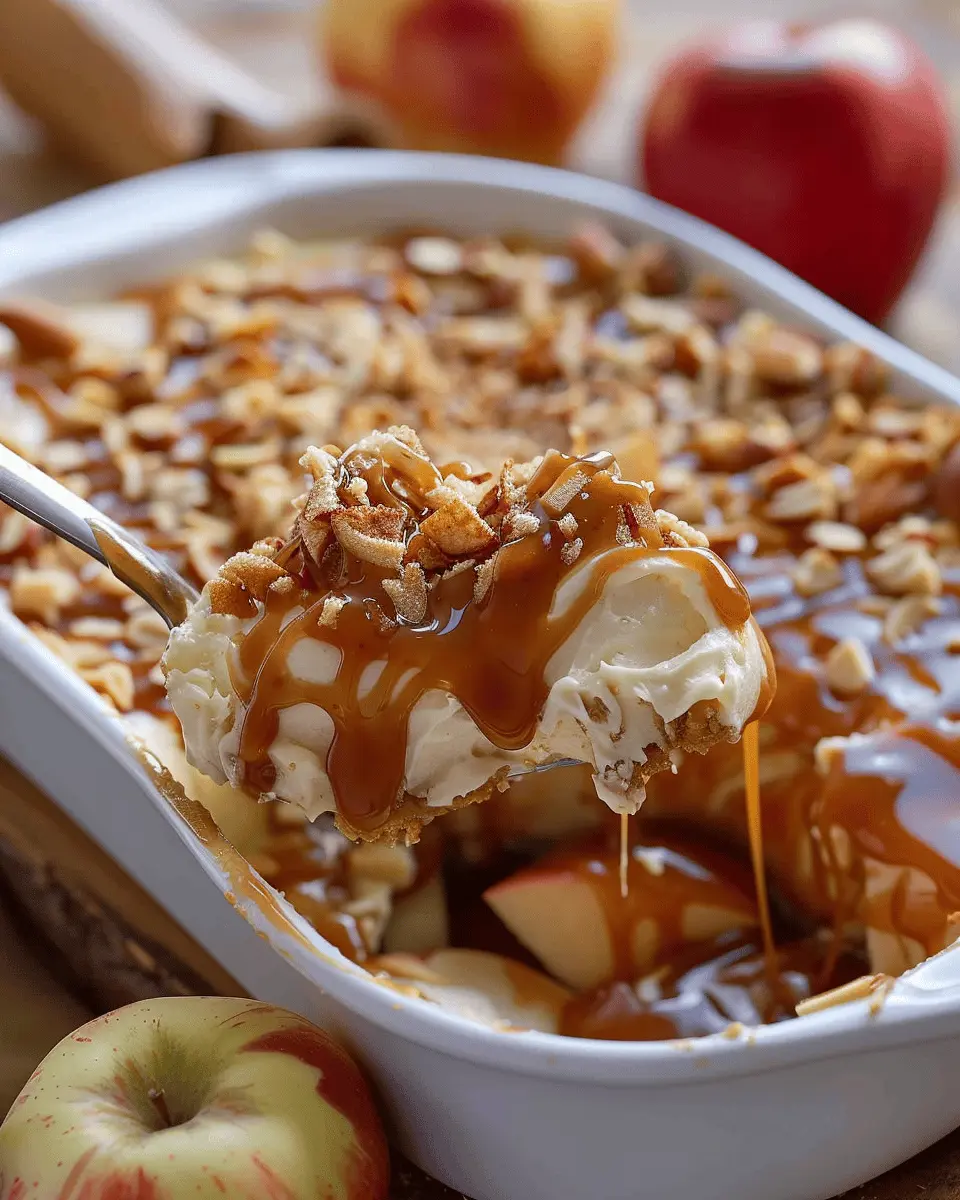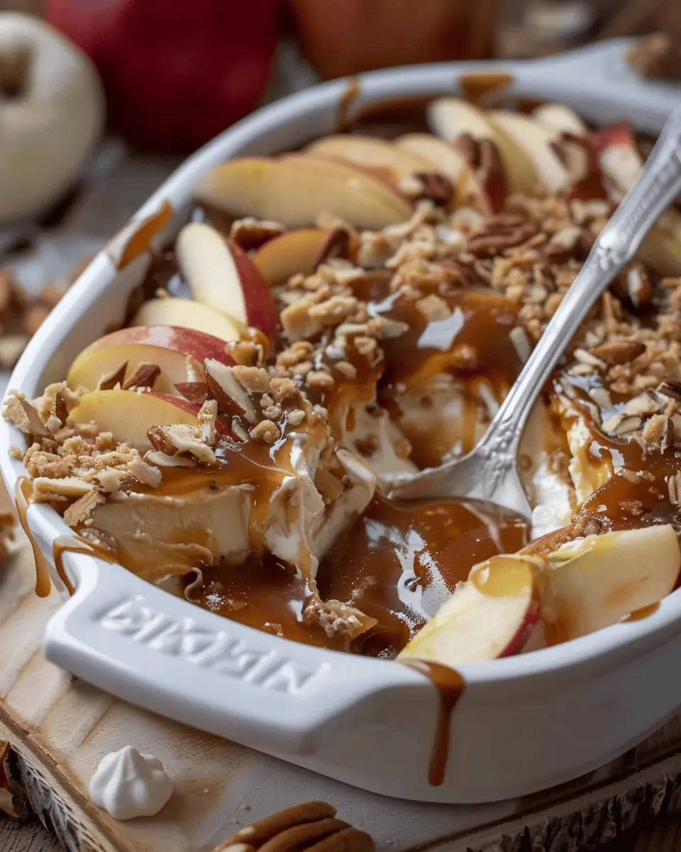 Let’s face it: we all love snacks that are quick to prepare yet impressive enough to wow our friends. This dip checks all those boxes and is incredibly versatile. Imagine a creamy cheesecake base blended with the sweet, buttery notes of caramel and the crisp, refreshing taste of apples. It’s a comforting yet refreshing treat that invites everyone to dig in.
