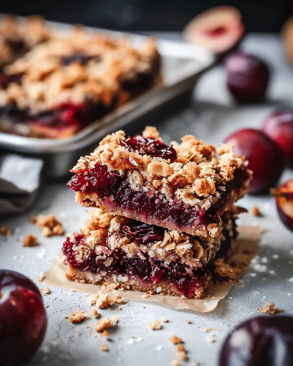 A delightful recipe for Easy Plum Crumble Bars that combines sweet plums with a buttery crumble topping, perfect for any occasion.