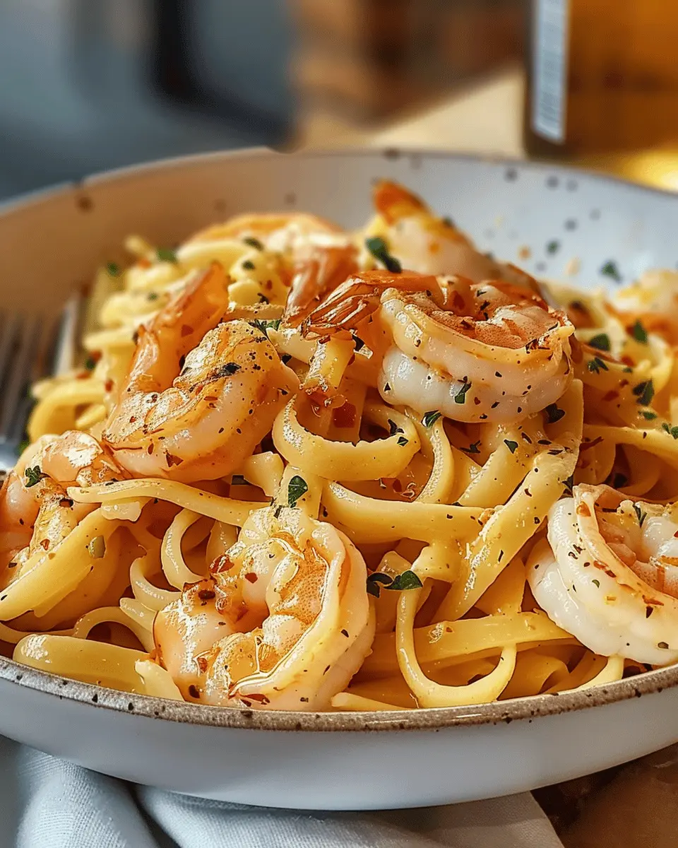 Now, the fun part! Cooking this delicious dish will take roughly 20 minutes. You’ll sauté the shrimp, whip up the creamy sauce, and combine it all with pasta to create a meal that’s sure to impress.