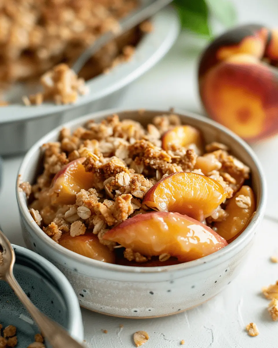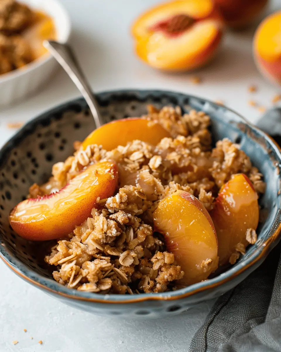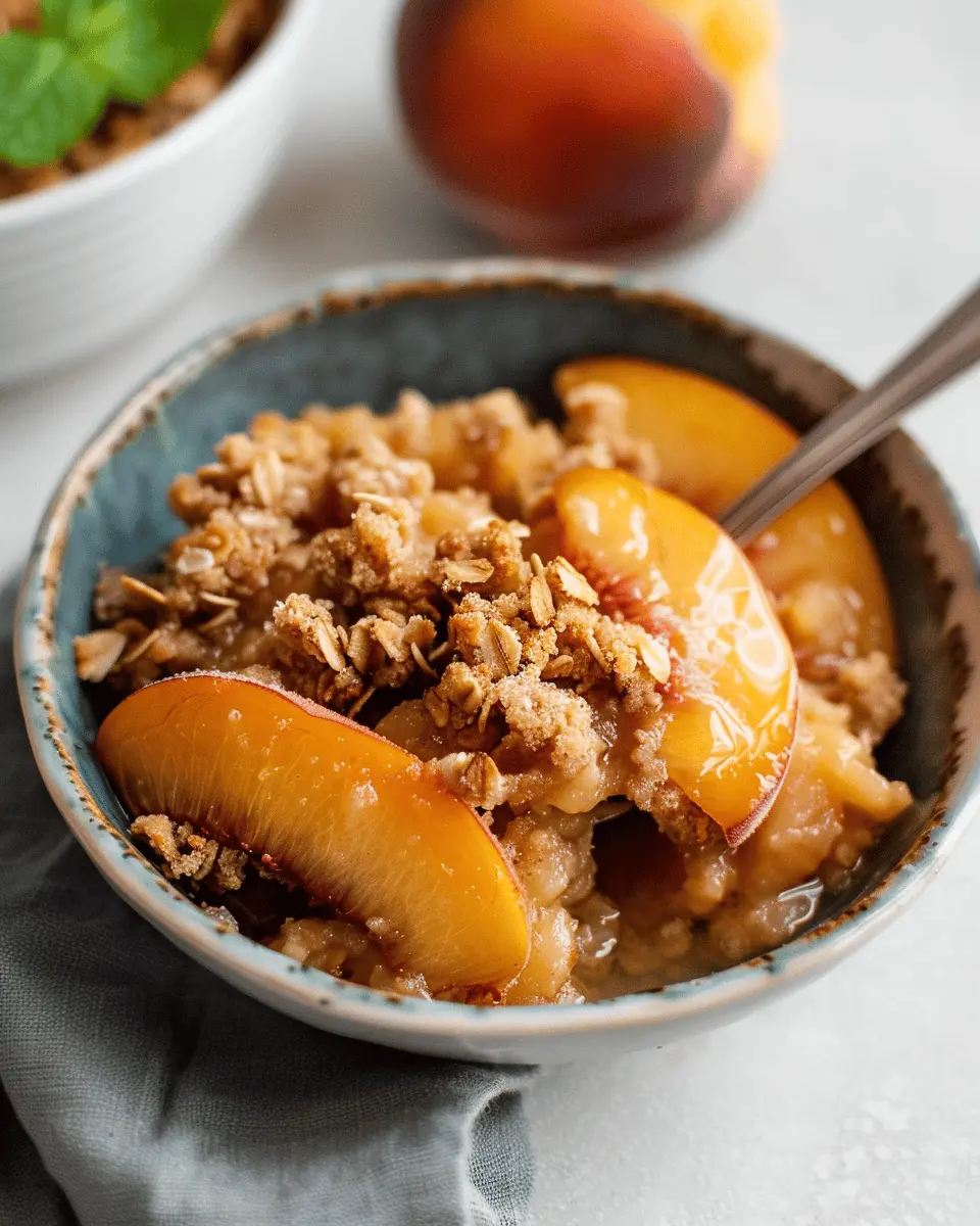 Spiced Peach Crisp with Cinnamon and Nutmeg