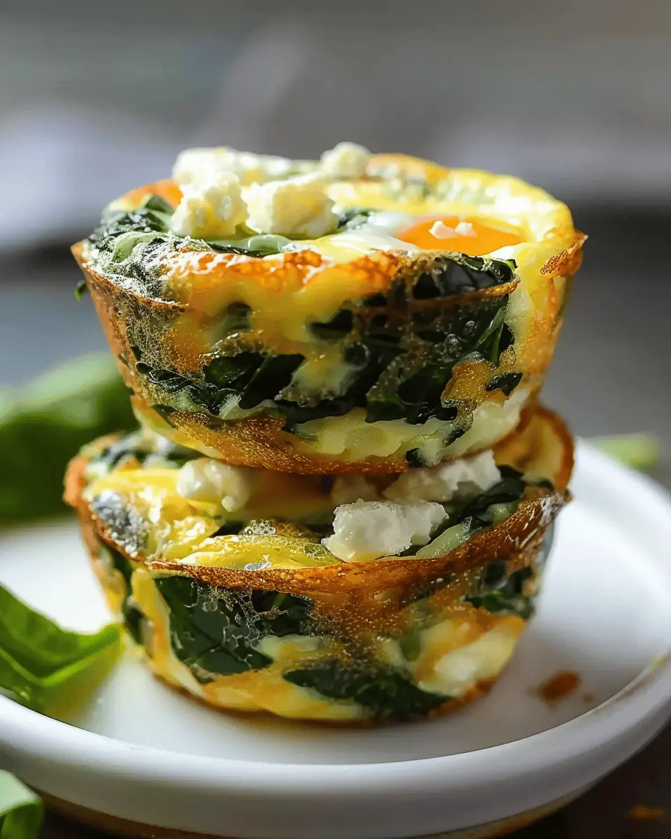 A quick and healthy recipe for egg muffins packed with spinach and feta.