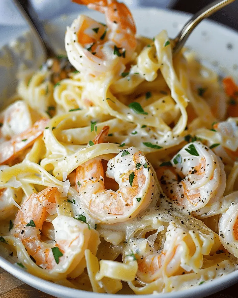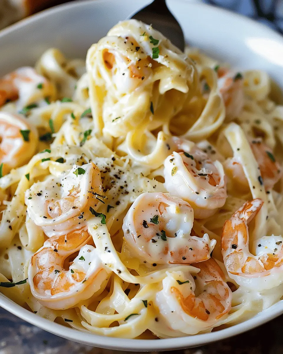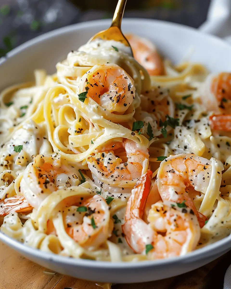 Shrimp Fettuccine Alfredo is the perfect indulgent comfort food, combining rich flavors and a creamy texture that is sure to please.