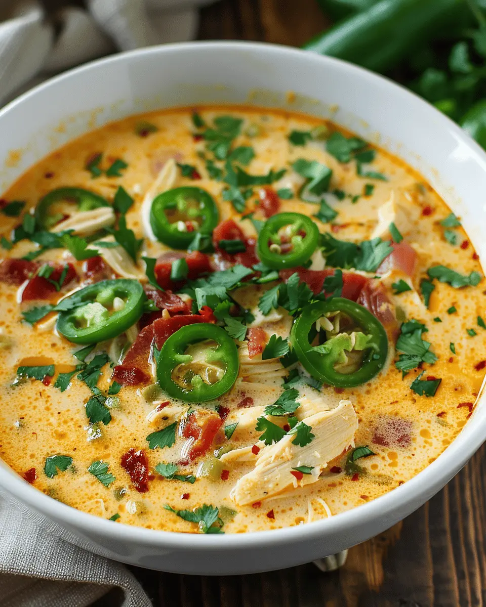 Imagine this: you come home after a long day, the air is crisp, and all you want is something comforting. This soup is your answer. It’s rich, creamy, and just the right amount of spicy. The blend of cream cheese and chicken broth creates a velvety base that lovingly envelops pieces of tender chicken and crunchy jalapeños. It’s a delightful marriage of flavors that keeps you coming back for more.