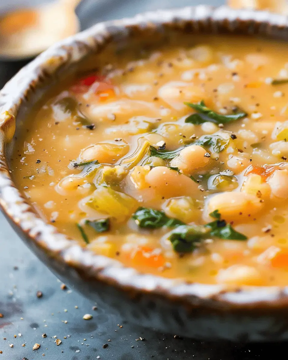 • Ingredients: Start with your usual suspects—canned white beans, vegetable broth, and aromatics. Add a generous handful of fresh spinach toward the end of cooking for that vibrant color and nutritional boost.